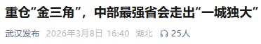 3月8日,武汉官方转发了一篇标题为《重仓“金三角”,中部最强省会走出“一城独大”》的文章。
