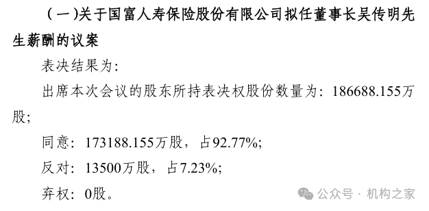 然而,股权层面的“铁板一块”并未传导至董事会。看似稳固的控制结构之下,决策层面的分歧却浮出水面。机构之家注意到,在近期多项议案中,反对票的身影频繁出现。尤为值得关注的是,一份涉及拟任董事长吴传明薪酬的议案,遭遇个别股东的明确反对。而反对者指向清晰,为持股13500万股的上海恒大建材市场管理股份有限公司。